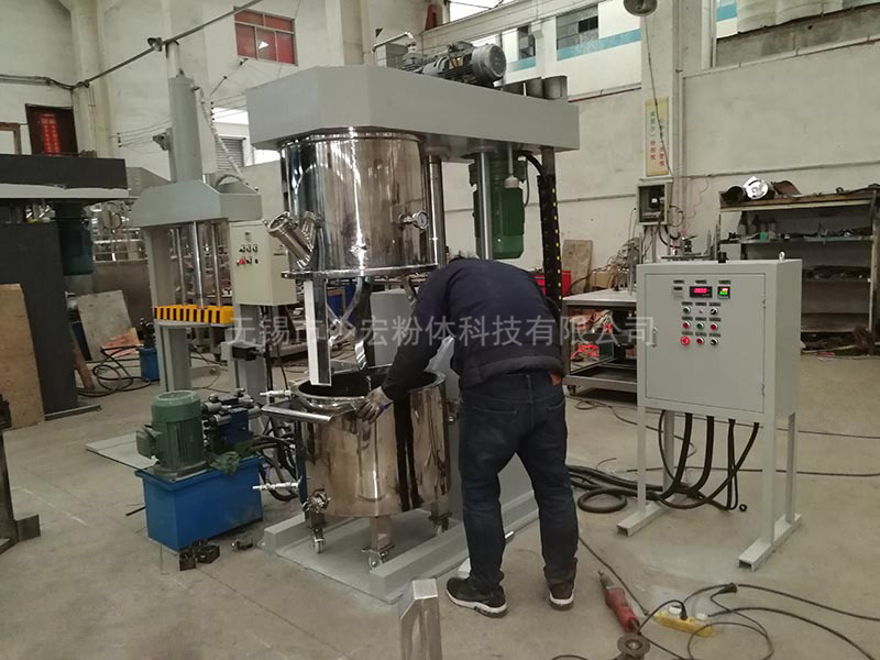 真空行星攪拌機的特點為:主機采用行星齒輪減速機設計,低噪音,機械效率高,可節省動力使用及減少設備占用空間。該機器適用于化工、輕工、食品、電池、制藥、建材、農藥等行業所需的多組份固-固相、固-液相、液-液相物料的混合、反應、分散、溶解、調質等工藝,如油墨、顏料、粘膠劑、密封膠、封裝膠軟膏、糊狀物料、潤滑脂、油漆、膏狀化妝品、添加物等多種高粘稠物的制備。使用粘度范圍10,000~1,000,000CP左右。攪拌器的形式根據物料要求可為多層漿葉式、框式、蝴蝶式、外輪式等。和普通攪拌機相比,它有如下優缺點: